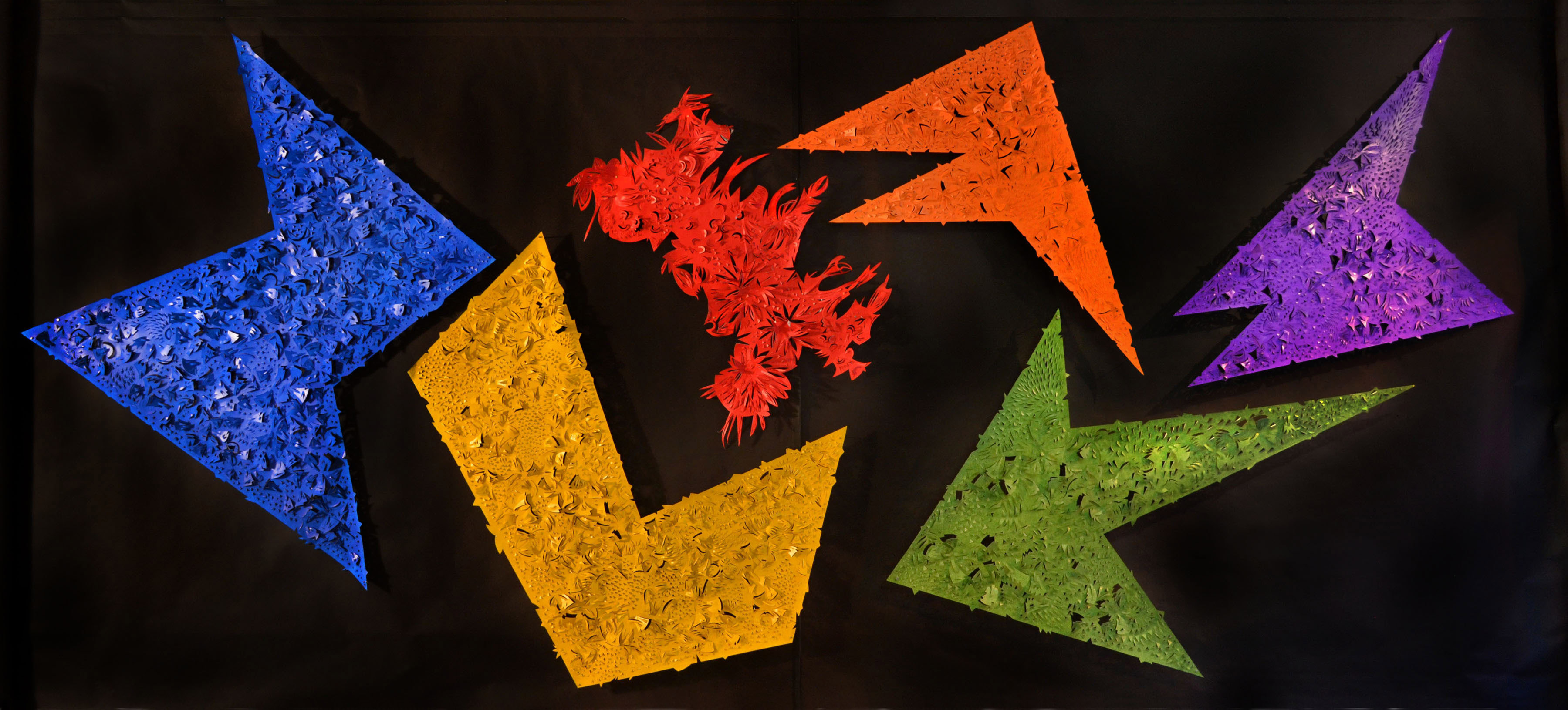 Artist Richard Shipps presents his unique perspective on the interaction of light and shadow with intriguing new works in cut paper. These pieces are augmented with kinetic mobiles and laser-cut steel sculptures. |