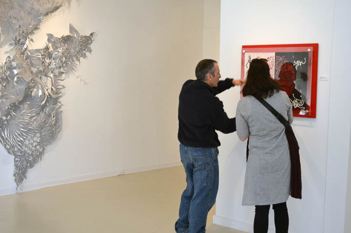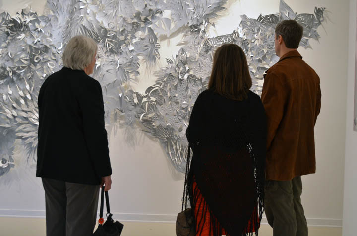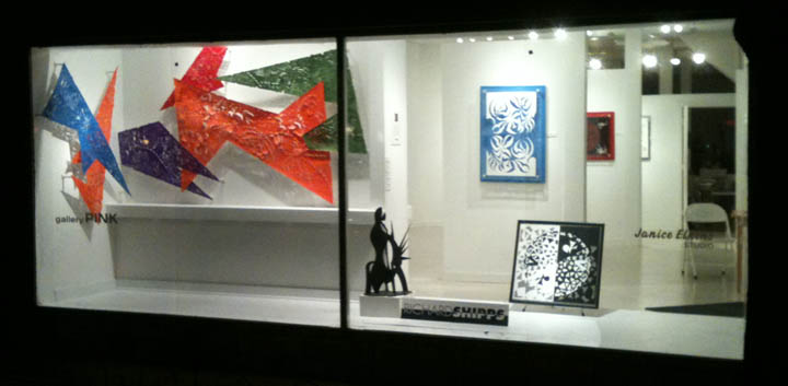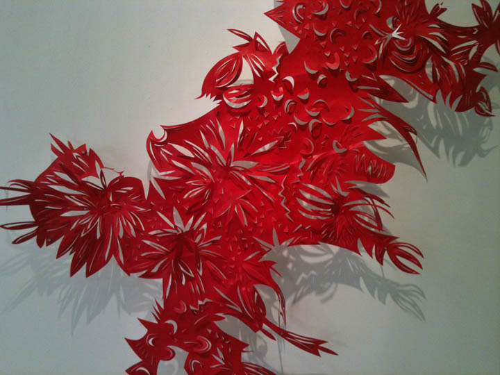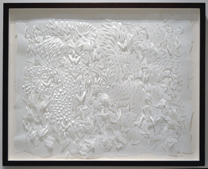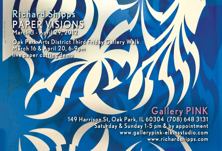 | Paper Visions runs from March 3 to April 29, 2012. Gallery PINK is open Saturday and Sunday afternoons and by appointment. The gallery is located in the Oak Park Arts District on Harrison at Lombard. Live paper cutting demonstrations will be conducted by the artist during Third Friday Gallery Walks in March & April. There is a diverse collection of Shipps' cut paper artwork on display in the gallery including folded cuts, texturizing, layered cuts, shaped panels, organic dimensional work and his trademark "single incisions". In addition, there are several laser-cut steel sculptures, further displaying the artist's depth of exploration of form and counter-form. His artistic influences include Henri Matisse, Alexander Calder, Sol Lewitt, and Josef Albers. |