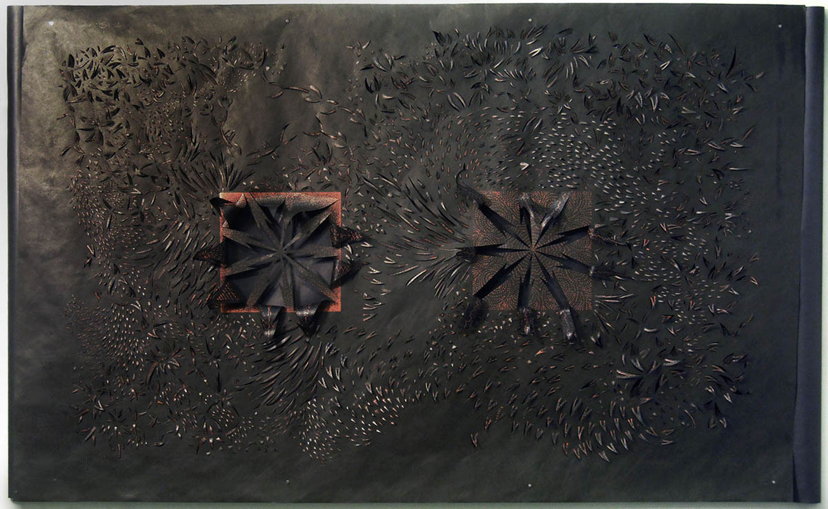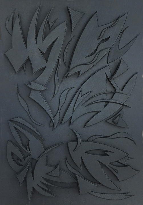 Dark Lyrics, corrugated cardboard assemblage, paint, 40"h x 28"w, 2015
