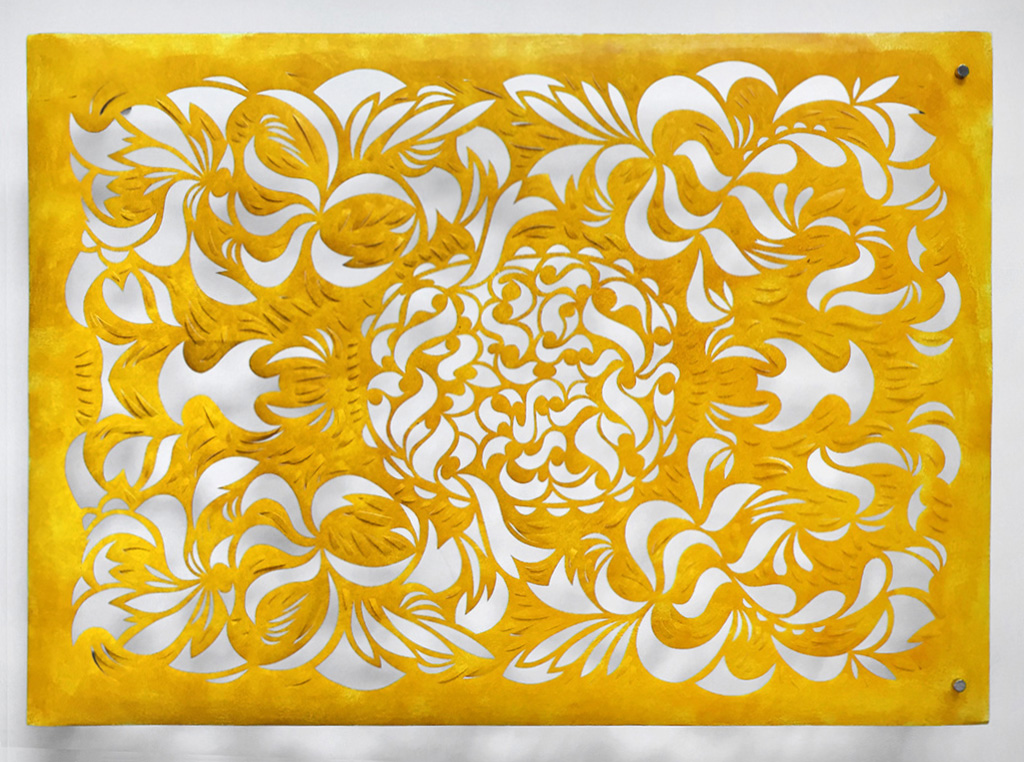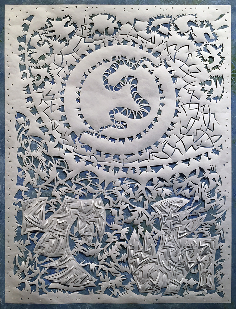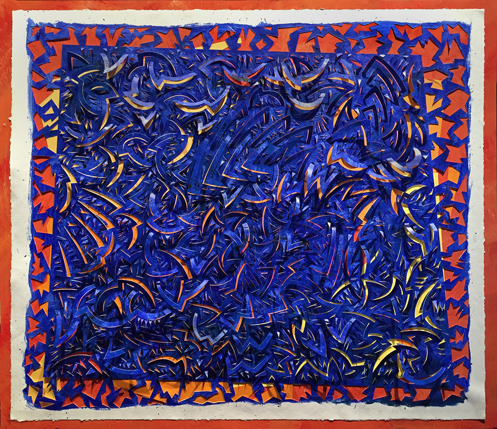 Sarondish Fulcrum, Tyvek paper & acrylic paint, 37"h x 57"w, 2015
