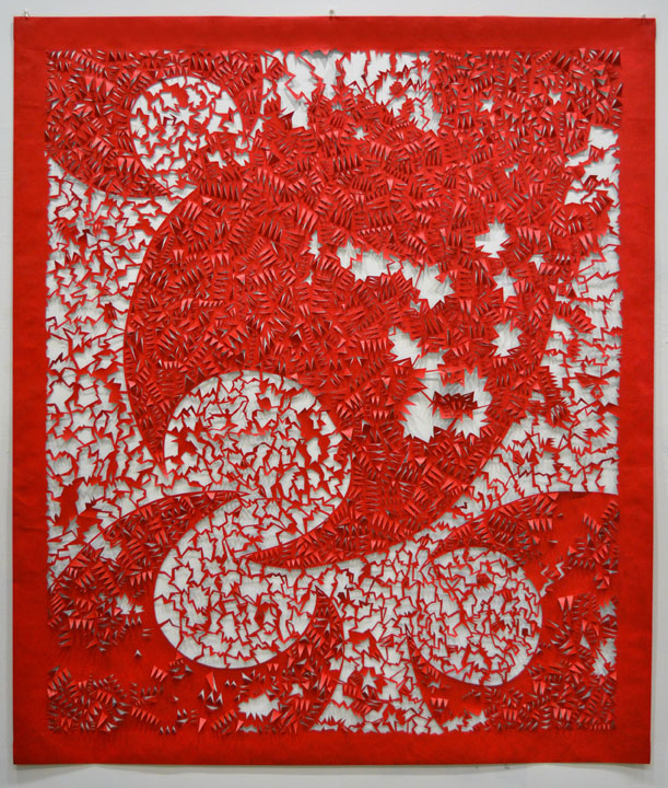 Dimensional Buzz - Red, Tyvek paper, acrylic paint, 48"h x 60"w, 2011