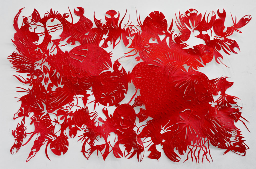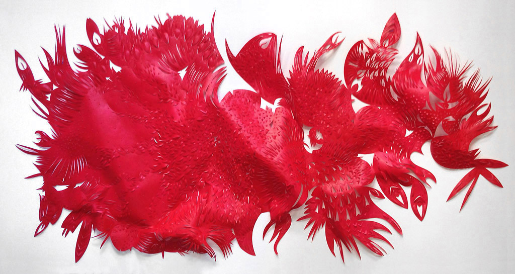 Red Wild Thing, Tyvek paper, 44"h x 30"w, 2012