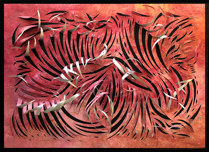 Manic Exaltation, corrugated cardboard assemblage, 40"h x 28"w, 2013