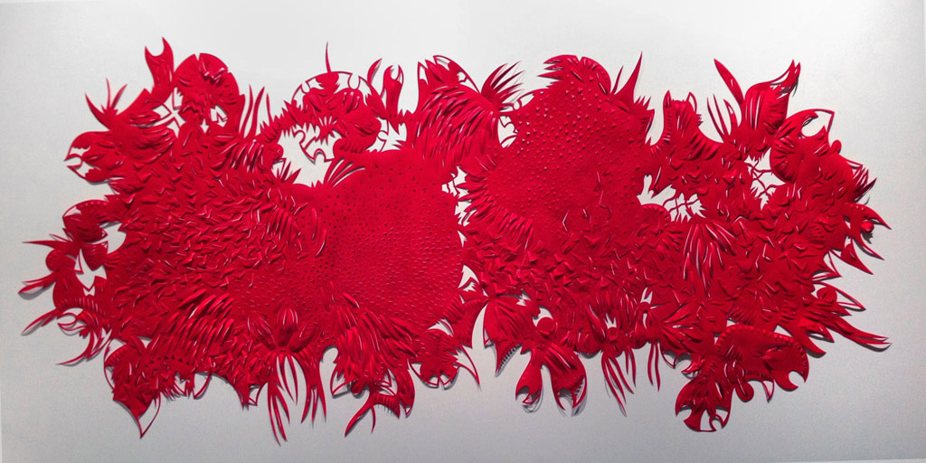 Red Wild Thing detail, close-up dimensional Tyvek paper, 2012