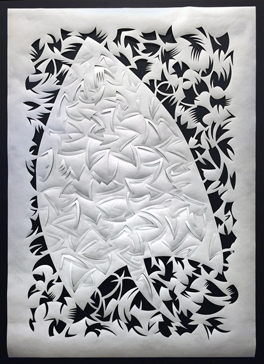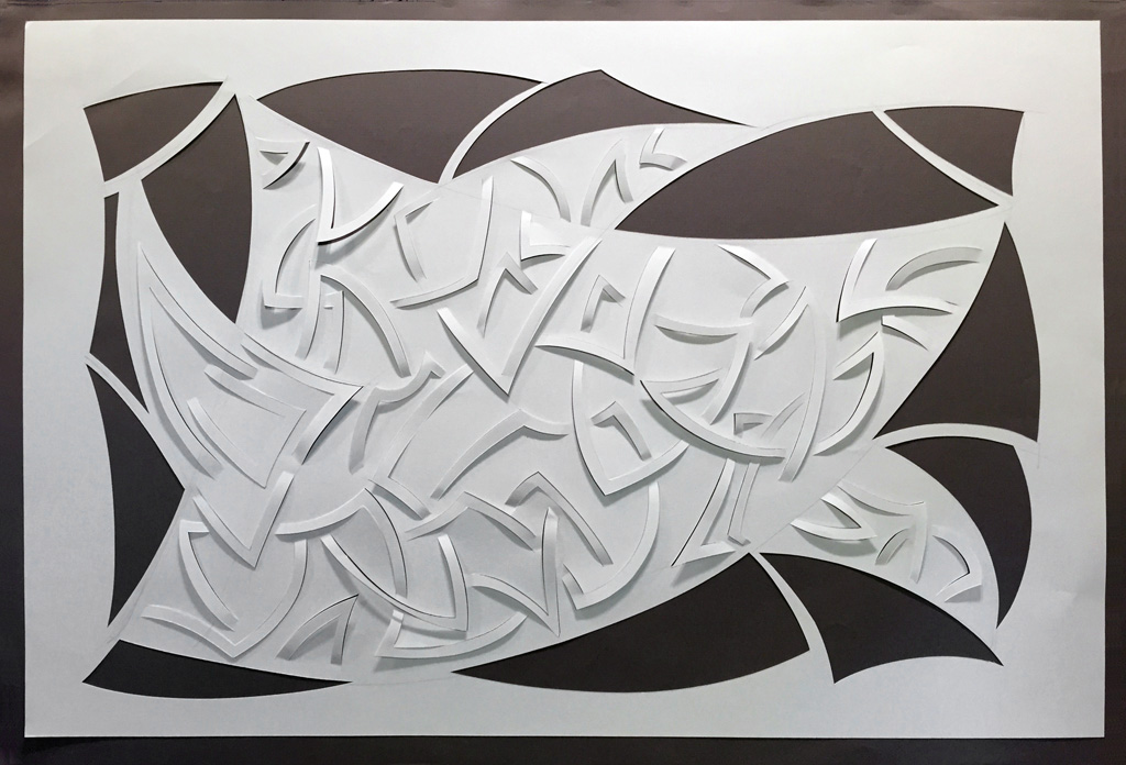 "Asymmetricosity One", Tyvek paper, 40"h x 60"w, 2016